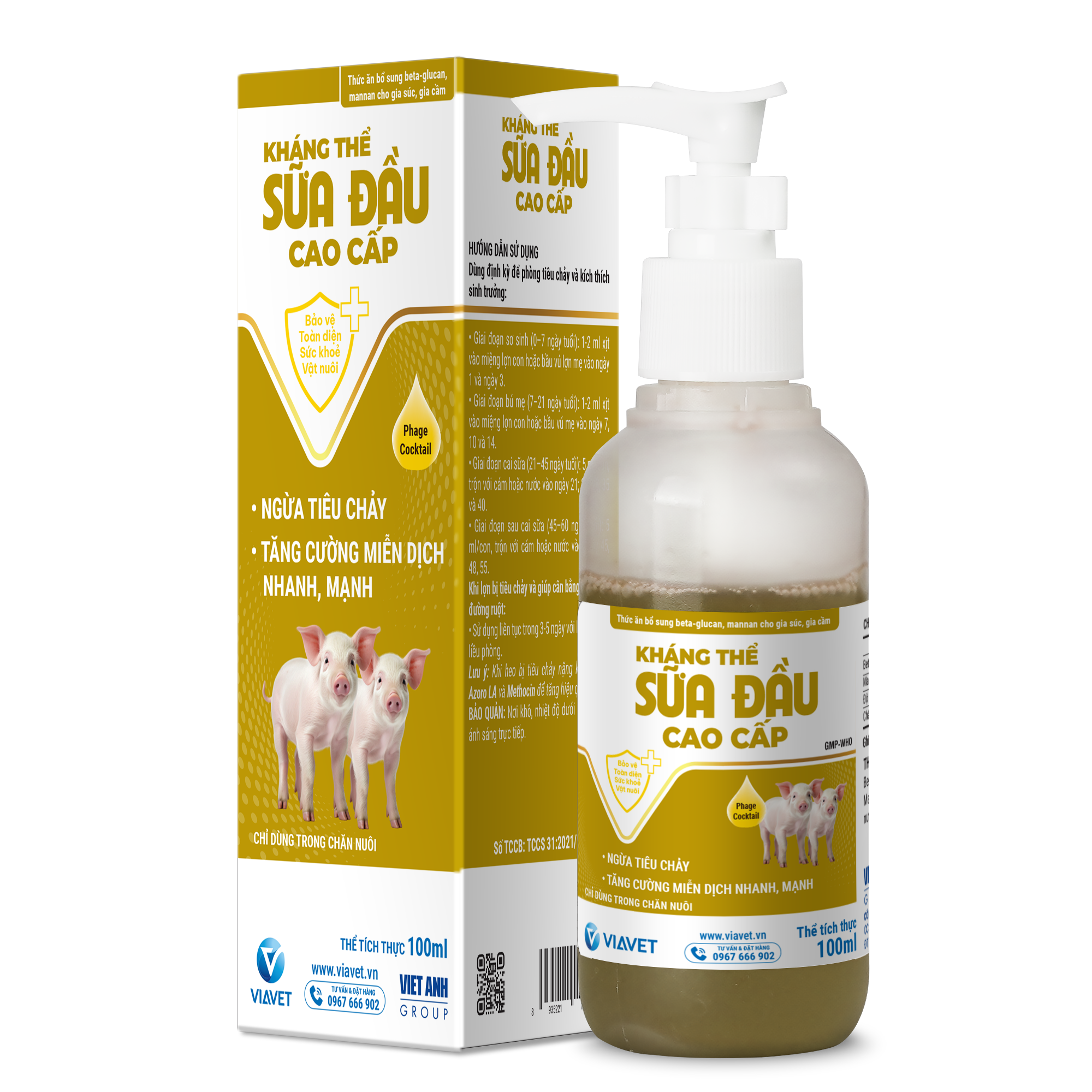 - Giai đoạn bú mẹ (7–21 ngày tuổi): 1-2 ml xịt vào miệng lợn con hoặc bầu vú mẹ vào ngày 7, 10 và 14.