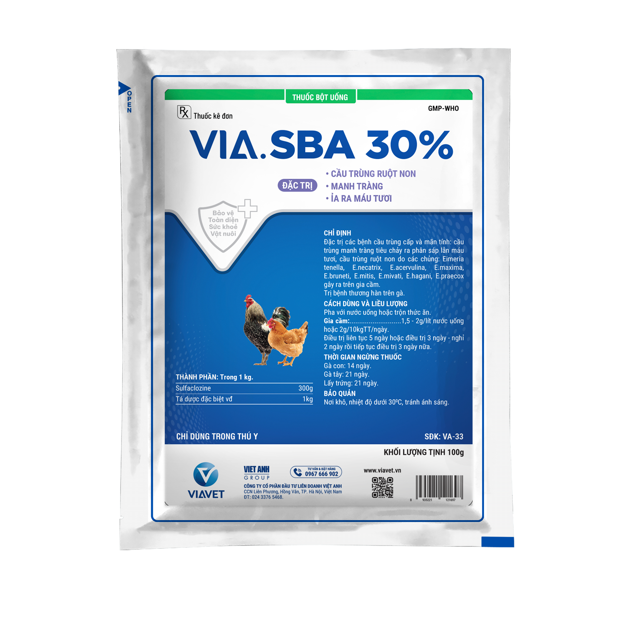 Gia cầm……………1,5-2g/lít nước uống hoặc 2g/10kgTT/ngày.